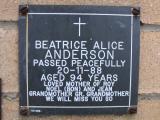 Beatrice Alice Anderson grave monument: legible names and details